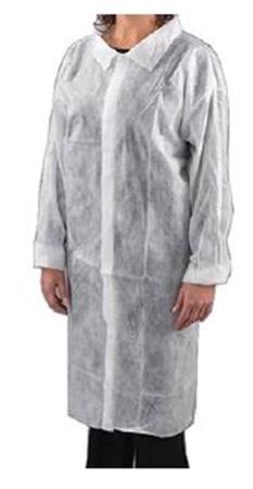 Látogató köpeny, egyszer használatos, tépőzáras, polipropilén, 20g, M méret, fehér